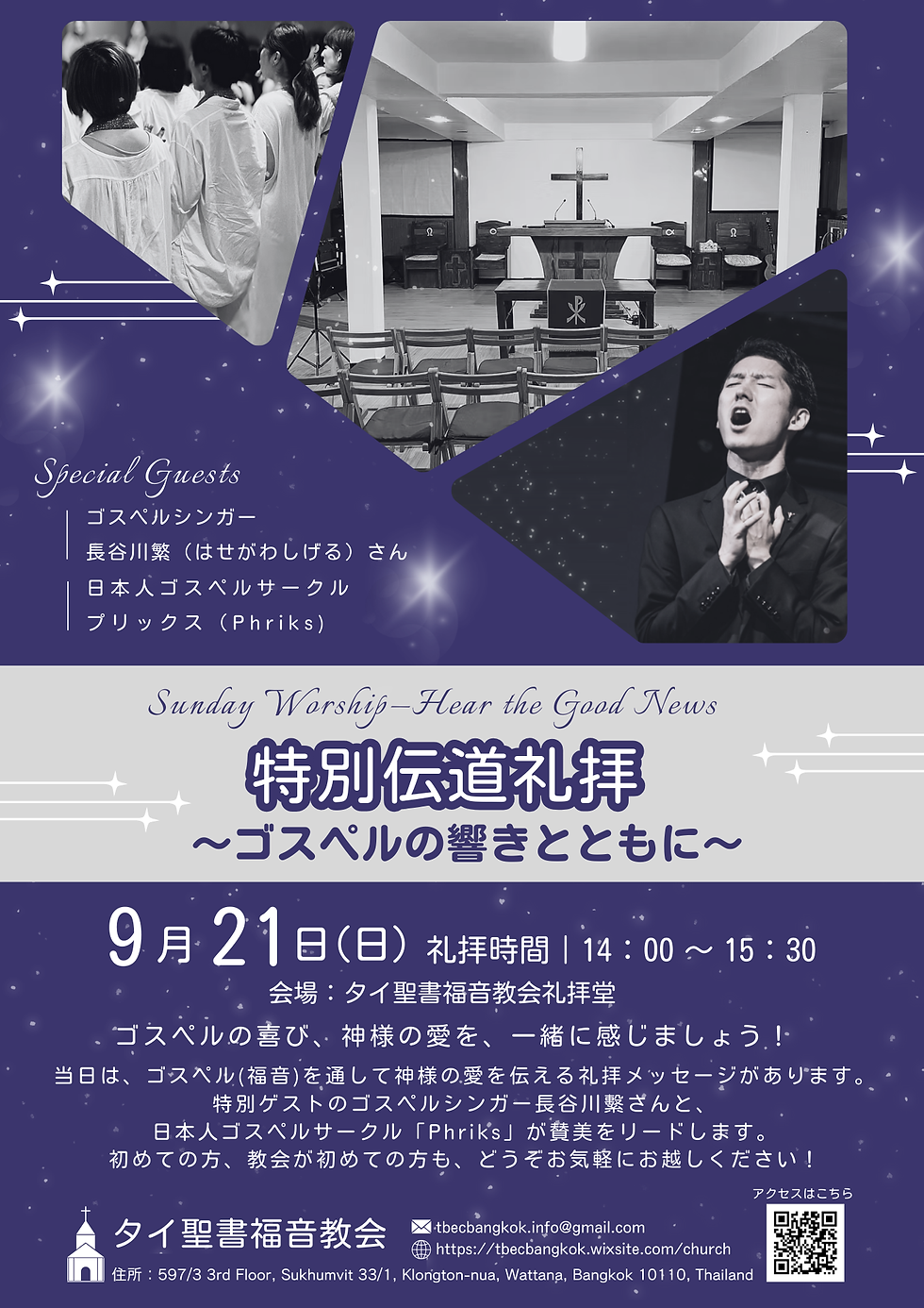 9月20日(土)・21日(日)、タイ聖書福音教会を会場に、日本人ゴスペルサークル「Phriks(プリックス)」主催のゴスペルワークショップおよび伝道礼拝が行われます。